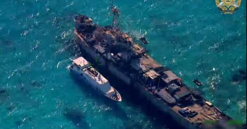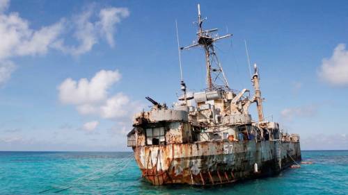 9月5日,菲律宾派了几艘船,往仁爱礁那艘“坐滩”25年的破军舰上送了一批物资——吃的、用的,还有燃料,顺便还换了一波人。