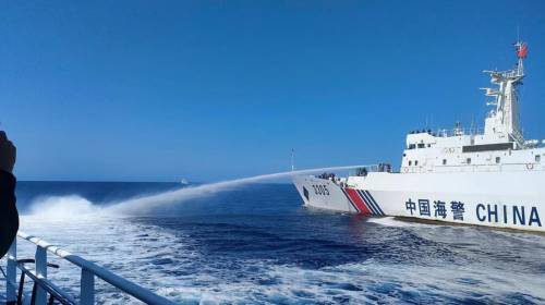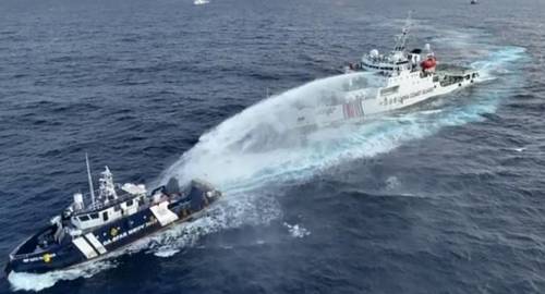 中国在仁爱礁周边海域部署了24艘各类船只,包括海警执法船、渔船及部分海上民兵船只,形成多层封锁网。