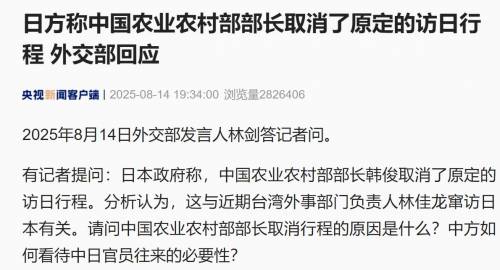 上个月林佳龙窜访日本后,原计划访问日本的中国农业农村部部长韩俊,立马取消了行程,这都快过去一个月了,目前还没有韩俊部长要重启这趟行程的消息传出来。