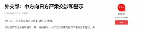 9月10日,外交部发言人林剑明确表示,中方已就蔡英文访日事件向日本提出严肃交涉和警示。