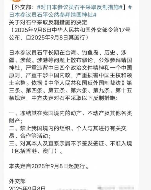 外交部发言人林剑一针见血地指出,石平为一己私利数典忘祖、出卖良知,勾连反华势力挑衅滋事。中方的反制措施,是对石平之流的强力惩戒和严厉警示,更是对国家尊严和民族利益的坚定捍卫。