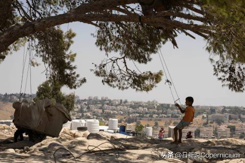 在紧邻埃扎里耶的贝都因人社区贾巴尔巴巴,赤脚的孩子们在俯瞰马阿勒阿杜明的山丘附近,在临时搭建的秋千上玩耍。空气中弥漫着一种末日将至的感觉。