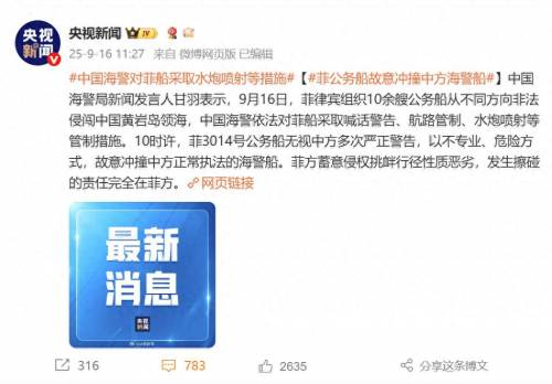 在福建舰刚刚进入南海的背景下,菲律宾和其背后的美国又不甘寂寞了。日前,美国“Army Recognition”网站刚兴致勃勃的的提到,“菲律宾军舰在美国主导的多国演习中挑战中国护卫舰”,紧接着就被狠狠地打了一巴掌——“《央视新闻》在16日报道称,当天凌晨菲律宾组织10余艘船只组成船队,非法侵闯中国黄岩岛领海,遭中方水炮喷射等措施管制”。