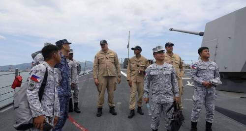 菲律宾也是竭尽全力,不仅派遣了2600吨的“何塞·黎刹”号(菲律宾海军旗舰,由韩国建造,共有两艘,也是目前菲律宾海军战斗力最强的军舰),和隶属海军的一架反潜直升机,还有空军四架FA-50战斗机、一架海上巡逻机支援。就在联合军演期间,中国海军一艘054A抵近监视,“距离菲律宾军舰仅7海里”。“Army Recognition”网站一边夸赞“何塞·黎刹”号,“大胆前出使用无线电进行挑战”,另一方面又解释“该护卫舰回应所处位置拥有完全合理的法律规定”。