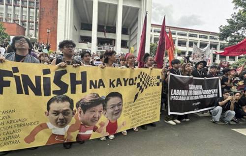 这些工程不仅普遍使用劣质材料、偷工减料,还有数千个只存在于账面上的“幽灵工程”。一些承包商通过伪造文件、pS照片来制造虚假的工程进度,台风一来,豆腐渣工程原形毕露,引发了民众的强烈不满,全国各地抗议声此起彼伏,要求小马科斯给个交代。