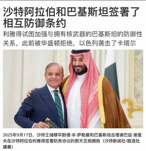 以上提到了,沙特愿意和巴铁签署共同防御条约,最直接的原因是对美国和以色列不满和警告。特别是此前沙特想和美国签署类似安全协议,但特朗普还没同意,他要求沙特和以色列改善关系之后再说。如今沙特不等了,直接找巴基斯坦签约,特朗普可能会不高兴。