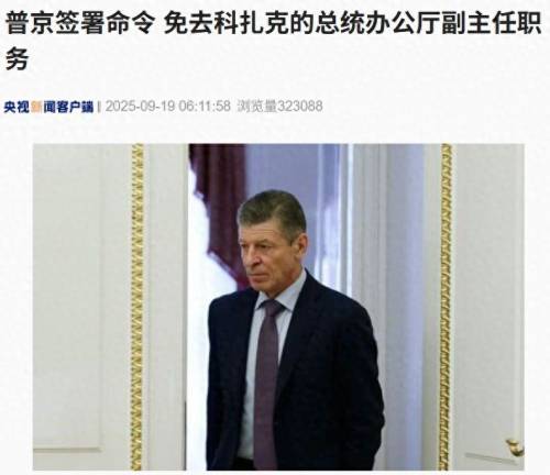 据央视新闻9月19日消息,俄罗斯总统普京当地时间9月18日签署命令,免去了德米特里·科扎克的总统办公厅副主任职务。