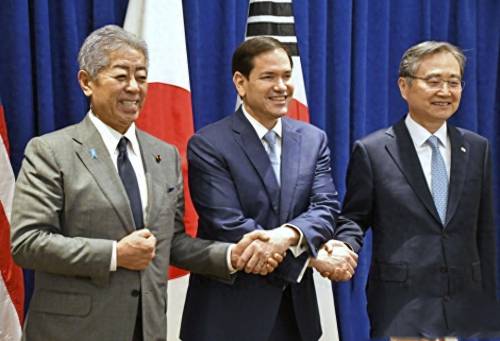 这三个国家怎么又搅在一起了呢?据悉,联合国大会在美国召开期间,美国国务卿鲁比奥、日本外相岩屋毅、韩国外长赵显举行了三边会晤,随后发表联合声明,对台海局势以及南海问题说三道四。