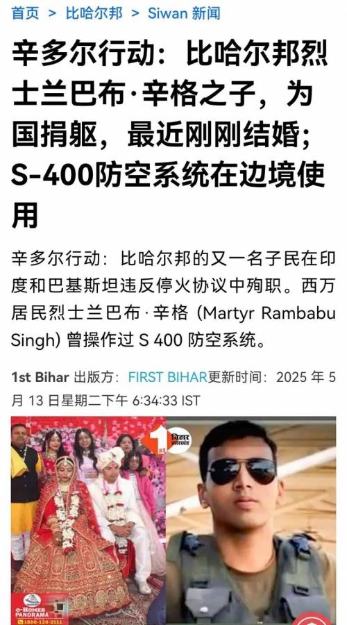 2025年5月的印巴冲突后不久,印度比哈尔邦的一家本地媒体报道称,比哈尔邦一名叫巴布·辛格(Martyr Rambabu Singh)的士兵在冲突中殉职。