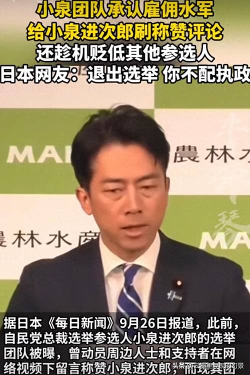 相较于高市早苗,小泉进次郎的事件明显更为恶劣,毕竟前者最多只是个人道德品质问题,后者会让人担忧倘若小泉进次郎上台,是否会像这次操纵好评一样操纵其他信息。