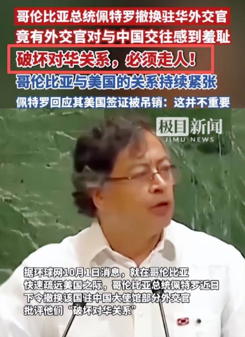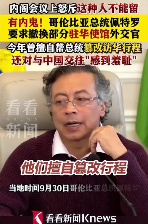 哥伦比亚总统佩特罗得知驻华外交官篡改行程、破坏外交之后十分寒心,立马就下令撤换了一部分的驻华人员。