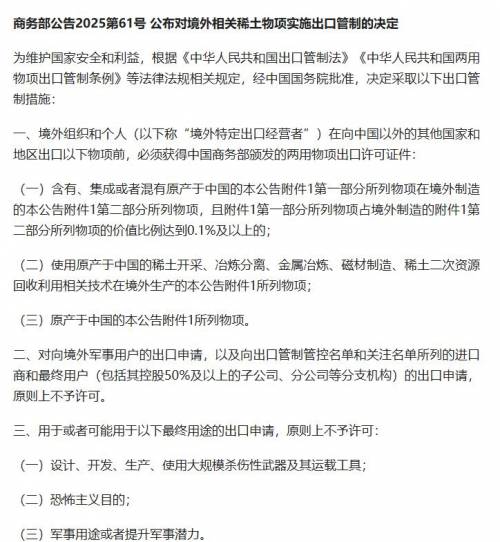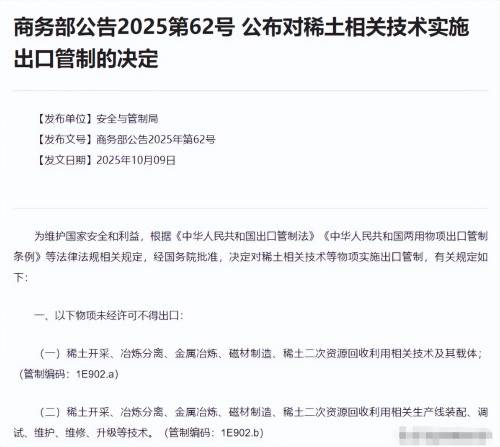 但没想到,10月9日早上,中国商务部突然出招,发布了2025年第62号公告。