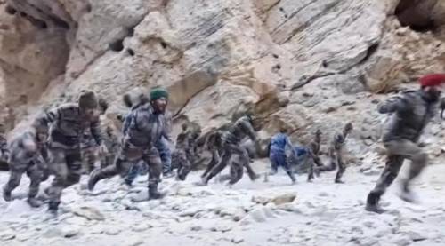 拉达克海拔4000米以上,冬天零下30度,氧气只有平原40%,印度士兵巡逻时扛着装备爬山,补给车在冰雪路滑行,经常断供。