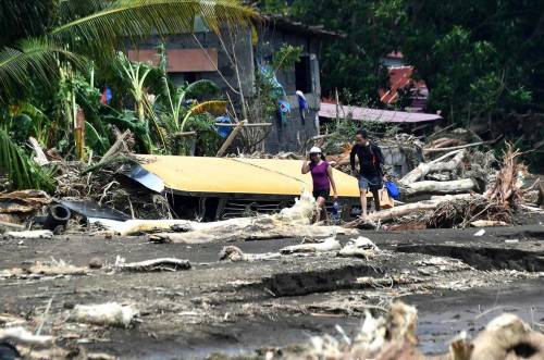 吕宋岛北部村庄被山体滑坡吞没,泥土裹挟着房屋碎片顺山坡倾泻;