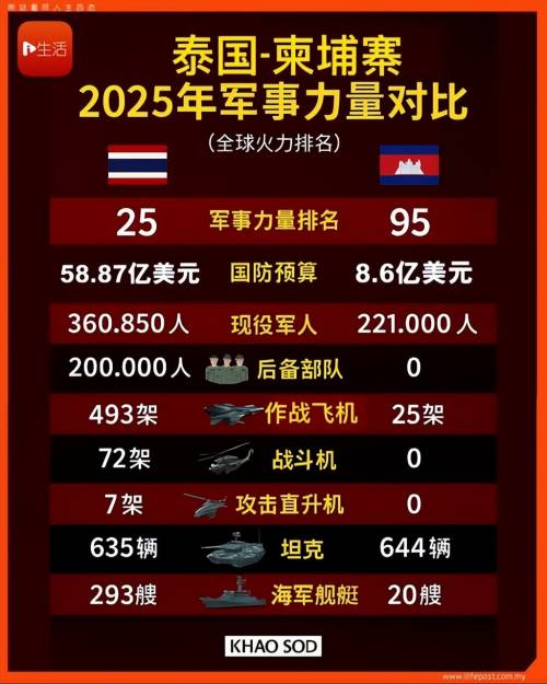 【柬泰军事实力对比图(相关数据仅供参考)】