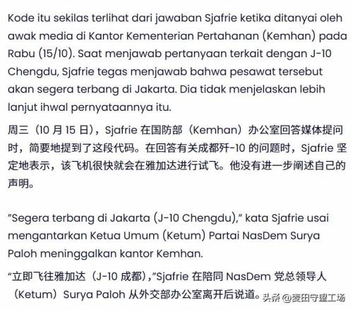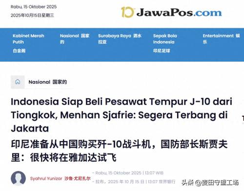 歼-10C战斗机自从印巴空战后,外销形势一片大好,最近又有一个新消息。根据印尼媒体《共和国报》等多家当地媒体报道称,印尼国防部长斯贾夫里·沙姆索丁确定采购中国歼-10战斗机。这是他在2025年10月15日,在国防部办公室回答记者的提问时公开确认的内容,他表示:歼-10战斗机“很快就会在雅加达试飞”。