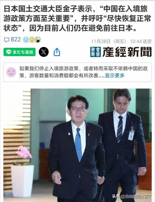 而这个转变也让高市内阁极为高兴,11月28日日本国土大臣在参加完那个会议之后,喊话中国要求中方尽快恢复对日旅游。