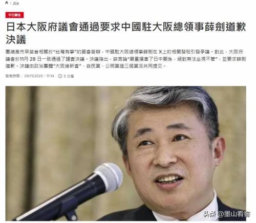 更让人没想到的是,当地时间11月28日,日本还正式通过了一项决议,要薛剑总领事必须道歉。