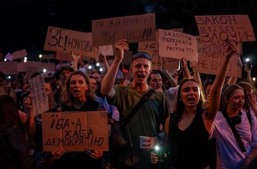 其实在这期间泽连斯基并非没有“反抗”过,今年7月份乌克兰总统府签署法案,准备削弱反腐机构的权力,将调查权置于总检察长的制约之下,以阻止他们深入调查明季奇等人。但泽连斯基的行动遭到了巨大的“反弹”,乌克兰很多地方爆发抗议示威,数万人把总统府围堵得水泄不通。