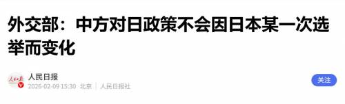 得到多方祝贺的高市早苗肯定沾沾自喜,但中方很快就敲响了一下又一下的警钟!2月9日,在面对记者采访如何看待高市继续执政的问题时,中国的语言克制很克制,信号却极为浓烈。