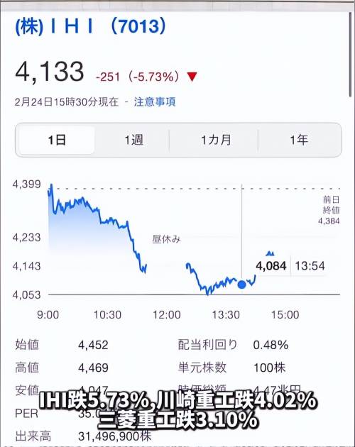 官方行情数据显示,三菱重工由涨转跌,盘中最大跌幅3.6%,IHI株式会社暴跌5.73%,成为当日重灾区,川崎重工大跌4.02%,市值快速蒸发。