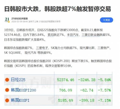 消息一出,韩股直接吓崩,熔断机制都触发了。