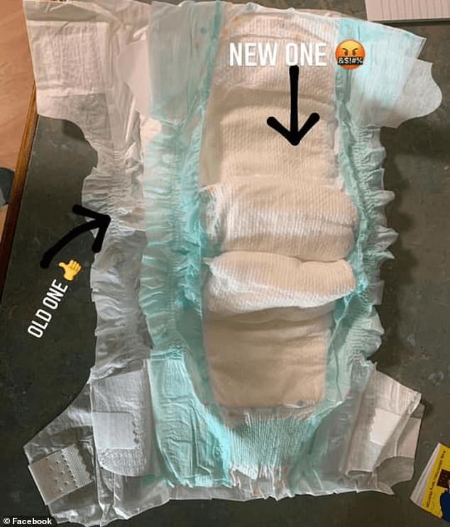 顾客在Facebook上贴出的图片显示,新的幼儿尺寸尿布看起来比旧款的要小很多。尿布外围防止渗漏的“翅膀”也显得更小了。