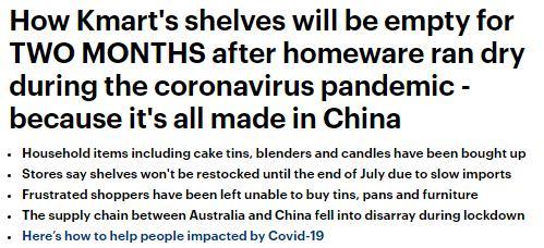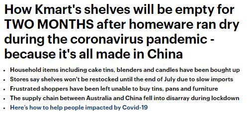由于疫情,来自中国的商品不能迅速补货,很多澳洲本地的热门商店的货架空空如也!因为他们大量库存都在海外生产。