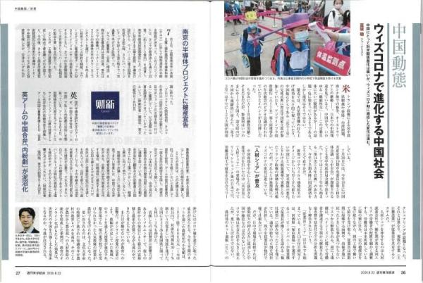 近日,日本《东洋经济周刊》(2020.8.22)刊载自由撰稿人富坂聪的评论文章,就部分日媒在涉华报道中频繁渲染“战狼外交”提出质疑。该篇题为《中国社会在与新冠病毒共存过程中变革》的文章指出“战狼外交”的提法本身存在重大问题,同时也与中国的现实情况不符。