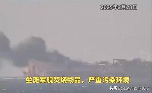 从画面上烟雾弥漫的程度看,火势还不小,浓烟散发出来的霉味和细微毒性颗粒,对仁爱礁海域和周围空域的自然环境有着很大的威胁,严重污染仁爱礁海域的环境。