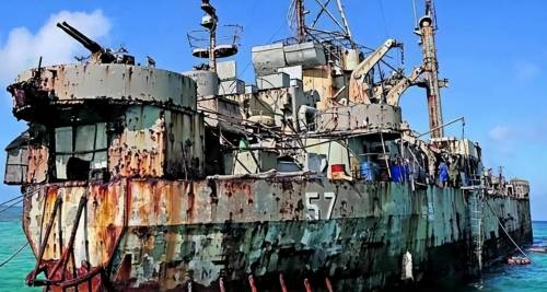 菲律宾非法坐滩在仁爱礁的马德雷山号登陆舰