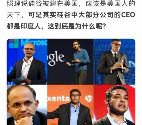 这说明印度裔在美国已经遍地都是了,而且印度人还有个特点就是喜欢抱团取暖,当一个公司有一个印度裔CEO时,那说明这个公司最少已经有三分之一是印度人了;