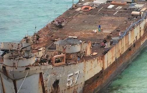 原本这艘军舰非法坐滩在仁爱礁上之后,就因为缺乏维护保养变得锈迹斑斑,再加上这些年的风吹雨打和海水侵蚀已经濒临解体。