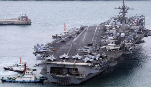 【美国航母“卡尔·文森”号进入韩国釜山海军基地】