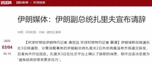 据环球时报援引伊朗媒体消息报道称,近日,伊朗副总统扎里夫向佩泽希齐扬提交了辞呈,就在同一天,财政部长赫马提则被议会解职。