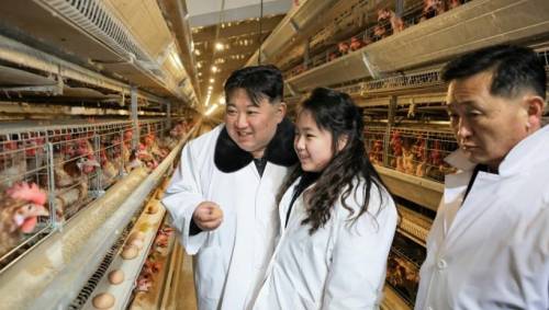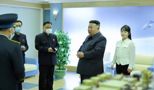 2023年11月,她在一场军工厂视察中被拍到手持一份文件,向父亲指着上面的数字,金正恩则点头回应。