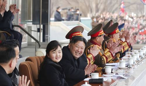 几个月后,她又出现在阅兵式现场,坐在金正恩旁边,观看坦克和导弹车缓缓驶过。