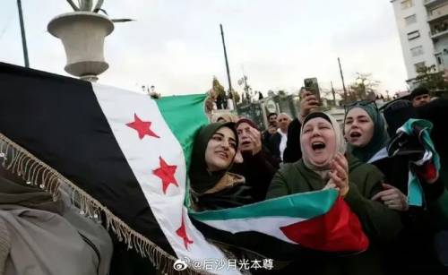 去年12月,朱拉尼一伙更换叙利亚国旗,两星变三星,红白黑变绿白黑,一些妇女们在欢呼阿萨德下台。