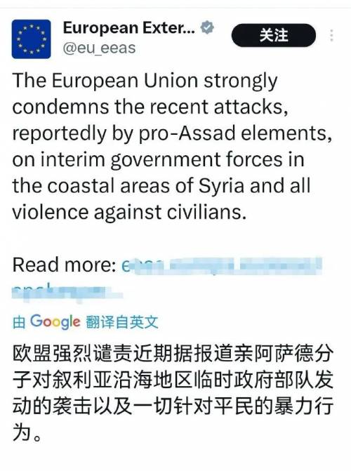 更讽刺的是,她所信赖的、所依靠的欧盟,居然在声明中谴责亲阿萨德武装攻击政府部队,用一句模模糊糊的“谴责针对平民的暴行”混过去。