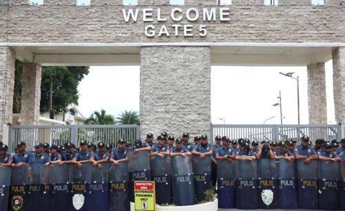 离开机场后,杜特尔特被警方转移到马尼拉附近的维拉莫尔空军基地,大批警察在现场维持秩序。