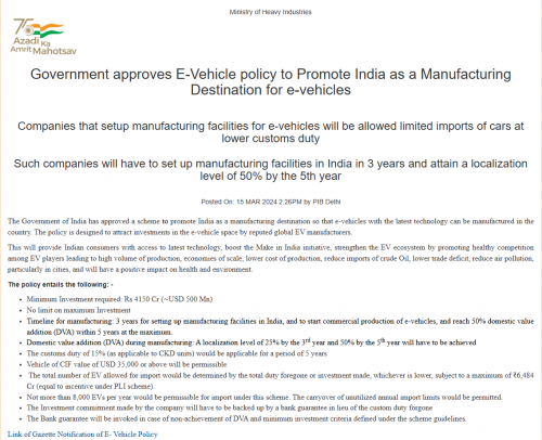 目前在印度重工业部官网的媒体发布上,很容易就能找到对这项政策介绍的通稿。可以说,全文充满了浓重的印度式工业发展的气息,就是那种,印度赚钱印度花,一分别想带回家的气息。