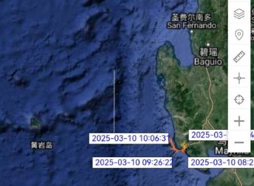 这当然是有原因的。因为菲律宾海军所谓的“黄岩岛”演习根本不在黄岩岛——从船舶追踪信号可以确认,当天菲海军“塔拉克”号的演习地点位于菲律宾吕宋岛西侧,这个坐标不仅在我国南海“九段线”之外,而且距离吕宋岛海岸只有8海里。