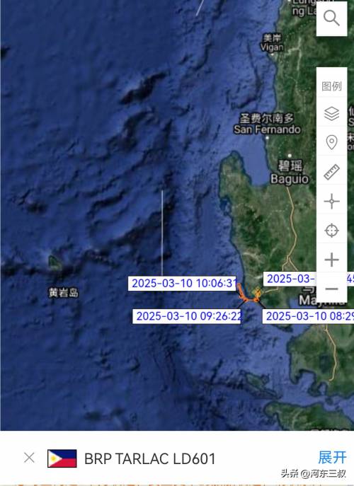 果然在仔细分析菲律宾媒体报道后,就会发现所谓在黄岩岛附近举行实弹射击,实际地点却在吕宋岛领海内,两地相差可不是一点点距离。根据“塔拉克”号登陆舰AIS信号显示,菲海军演习位于吕宋岛西侧领海内,距离吕宋岛海岸实际只有约8海里(约14.8公里)。距离黄岩岛东南方向230海里,换算过来大约距离425公里,所以菲律宾海军出动3艘军舰,在自己家门口炸了一通后,很得意的对向宣布在黄岩岛“附近”实弹射击演习。
