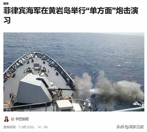 菲律宾这几天很热闹,杜特尔特被捕送住海牙瞬间成为国际大热门,而在此前一天黄岩岛附近海域更是传出炮声相当异常。菲律宾通讯社报道称,当地时间3月10日,菲律宾海军出动3艘军舰在黄岩岛附近海域实弹射击。声称这是菲律宾海军,首次在黄岩岛海域举行“单方炮术射击演习”,没有其他国家参与突显菲海军具备顶级战备能力。