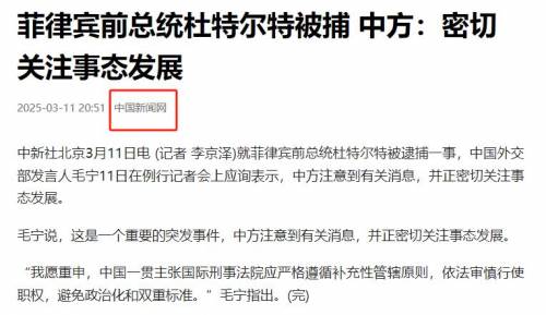 对于杜特尔特被捕一事,中国外交部也保持高度关注,并明确表态,希望国际刑事法院能秉持公正原则,避免政治化操作,更不能采取“双重标准”。