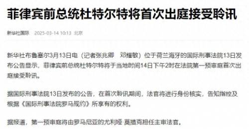杜特尔特事件牵动着各方的心,目前他已被关进国际刑事法院(ICC)的拘留中心,将于3月14日首次在该法院出庭,若被判有罪,可能最高被判处无期徒刑。
