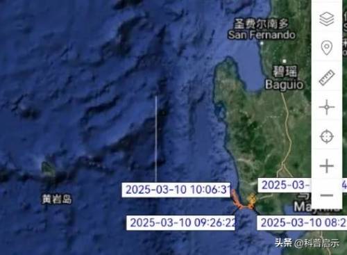 根据船舶追踪信号的分析,可以明确得知,菲律宾海军“塔拉克”号当天在菲律宾吕宋岛西侧的海域进行了演习。该演习地点确切地位于我国南海“九段线”范围之外,并且与吕宋岛海岸线的距离仅为8海里。若从宽泛的地理邻近性角度勉强而言,菲海军的演习区域确实可以算作是在黄岩岛“周边海域”的范畴内,但实际上,这一区域距离黄岩岛有着相当远的距离,超过了200海里。