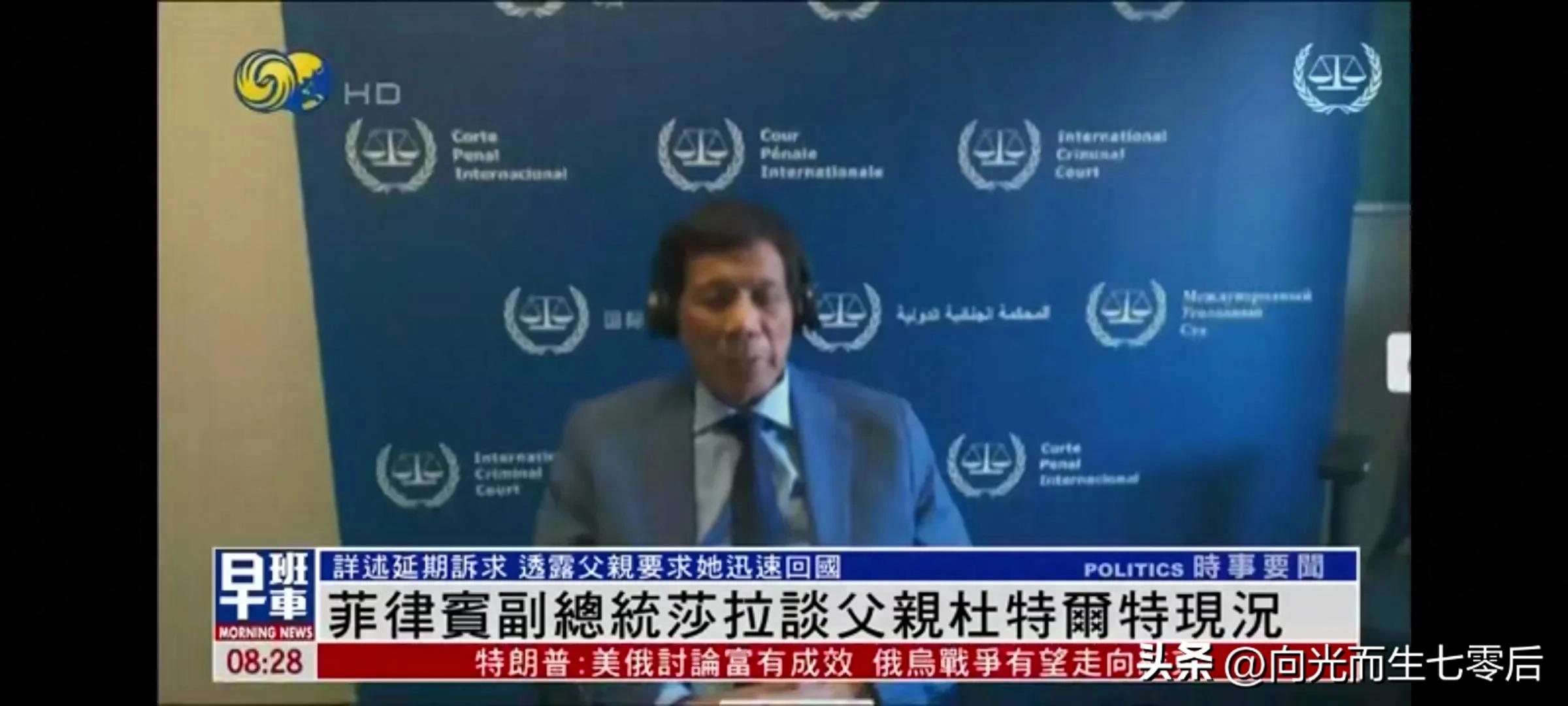 2025年3月14日下午(原定两点实际迟了半个多小时),菲律宾前总统杜特尔特在海牙用视频连线的方式参加了国际刑事法院的聆讯。
