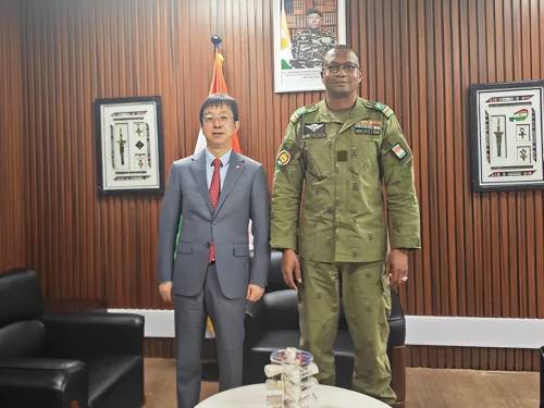 ▲2025年2月27日,驻尼日尔大使蒋烽拜会尼矿业部长阿巴尔奇上校,就落实中非合作论坛峰会成果、加强中尼矿业领域合作进行友好交流。