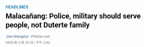 现在的情况是,杜特尔特家族在政治上已经极为被动,想走“正规程序”进行对抗已经是一件非常困难的事情。他们想要“绝地翻盘”,几乎只能寄希望于“非常规路线”。而小马科斯需要做的一件事,就是控制住军队和警察,断了杜特尔特家族“绝地翻盘”的希望。